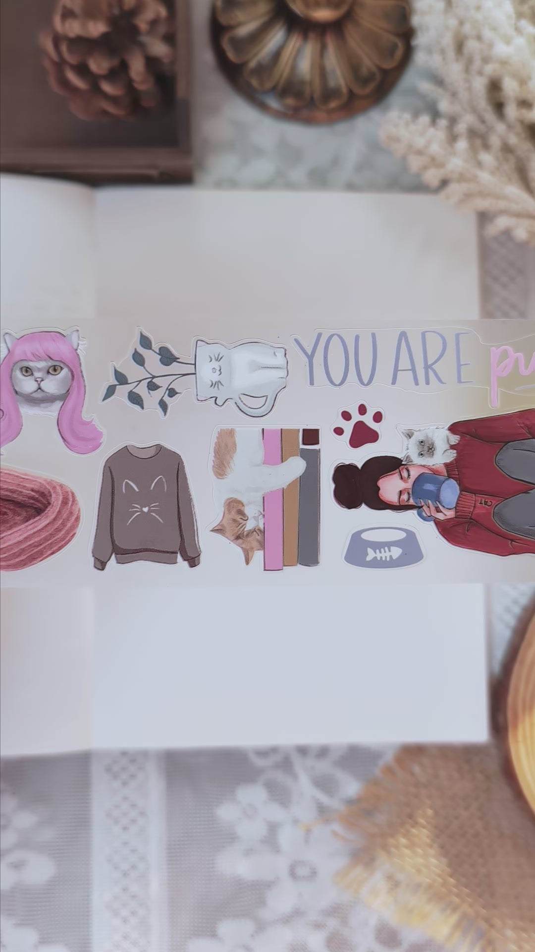 Celebrate the cozy, playful charm of cats with our Purrfect Days Pre-cut PET Tape [3.0] — a must-have for feline lovers, planners, and journaling enthusiasts! This beautifully illustrated tape captures the adorable everyday life of cats: napping on windowsills, stretching across books, playing with yarn, lounging in baskets, and bringing joy to every page.