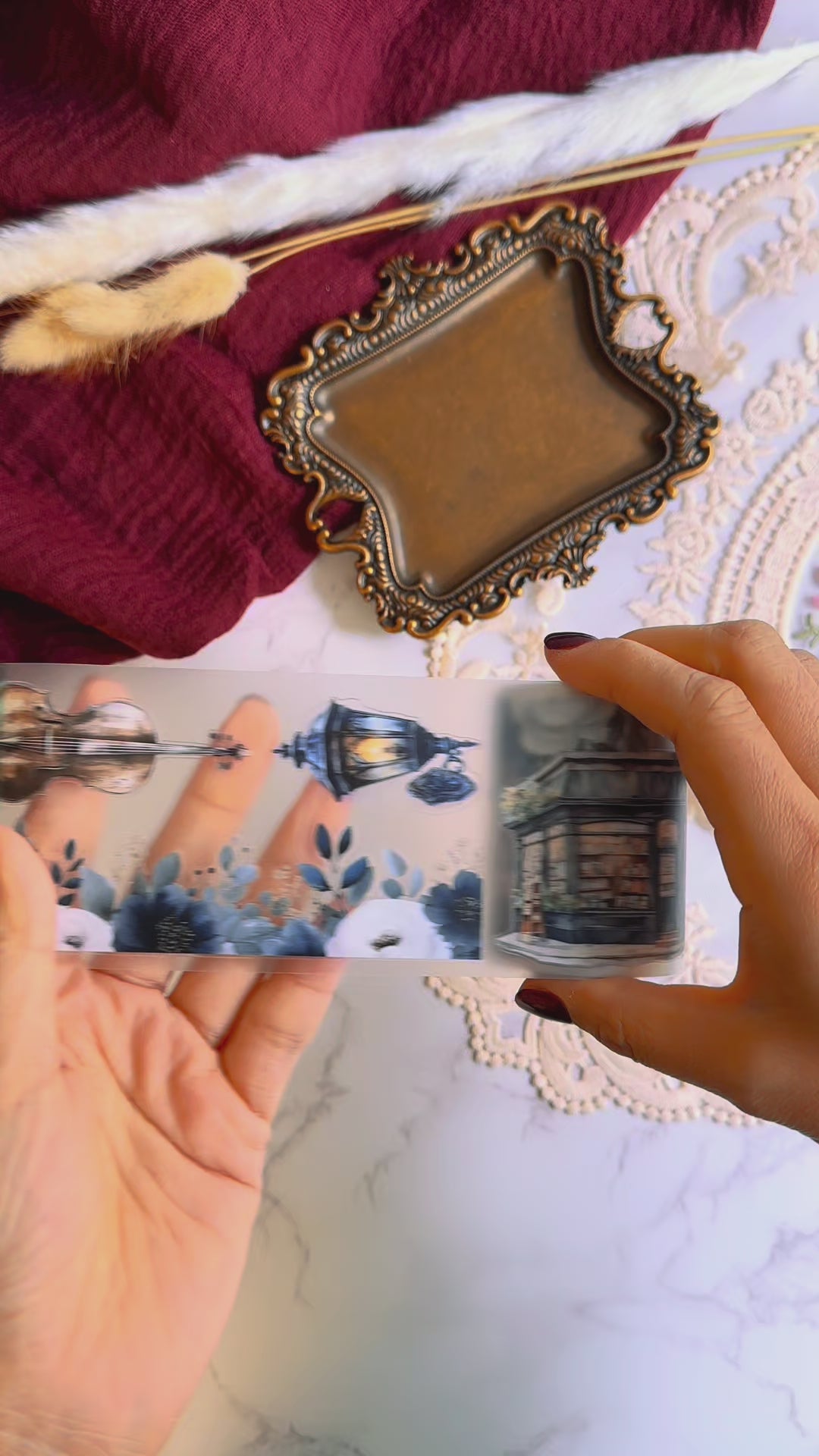 The muted tones and intricate artwork make this tape a versatile choice for planners, journals, scrapbooks, and creative projects. With its pre-cut format, you can easily peel and place each design—no scissors required. The transparent PET finish layers beautifully over pages and photos, creating spreads that feel both timeless and sophisticated.